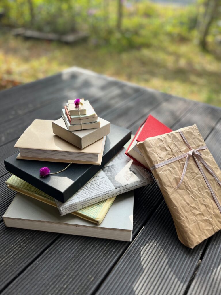 ラッピングを施してある本は、タイトルも作者もわかりません