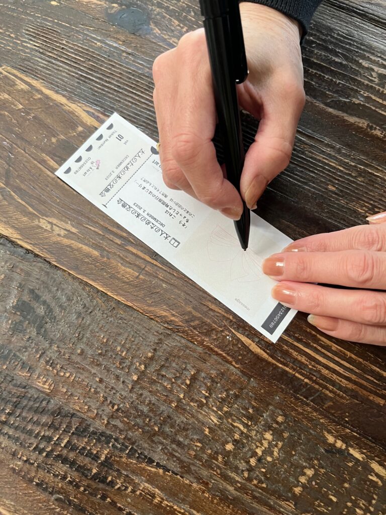 本に添えられていたチケットを係の者がもぎります。チケットの半券には元の持ち主からのメッセージが添えられています。